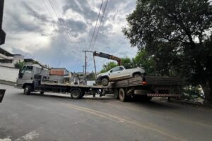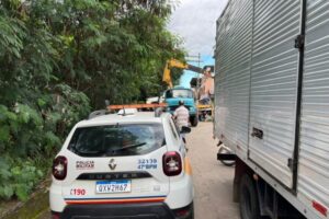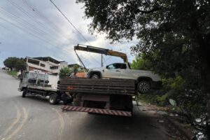 A Polícia Militar (PM) – 190 foi acionada e esteve presente, para prestar apoio. Guinchos, também foram chamados e trabalham na remoção da picape. Ninguém se feriu.