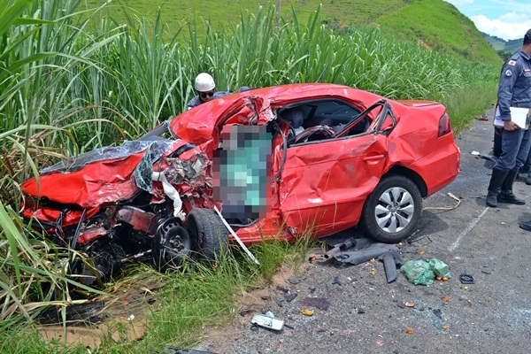 Segundo informações da Polícia Rodoviária Federal (PRF), o Voyage vermelho, com placa de São Gonçalo, no Rio de Janeiro, teria tentado fazer uma ultrapassagem, mas acabou se chocando com a carreta que seguia sentido contrário. Devido ao impacto, o condutor da carreta acabou perdendo o controle da direção e parou com o veículo do outro lado da pista.