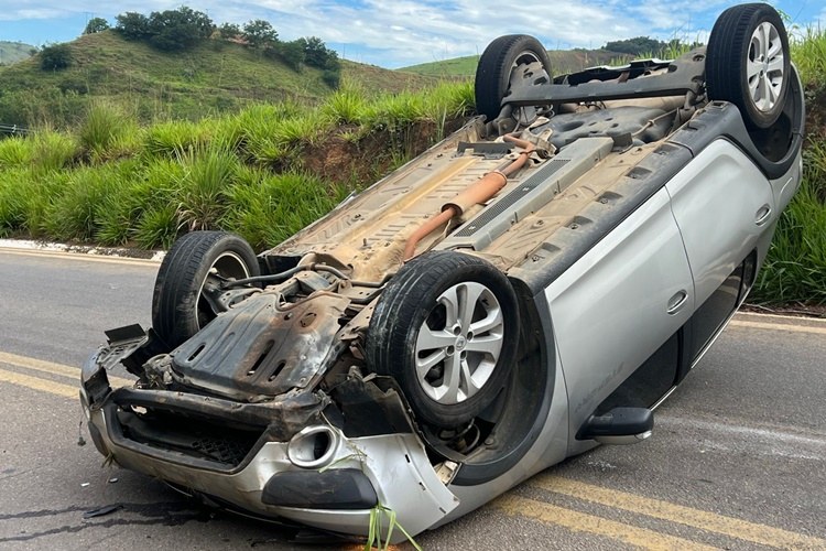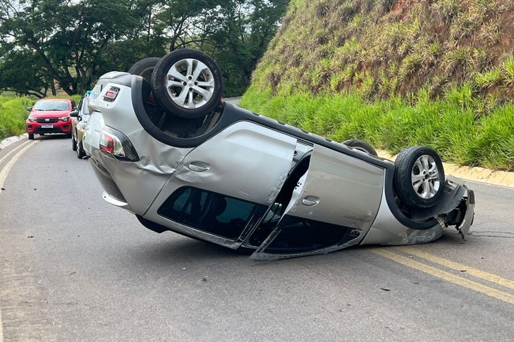 MURIAÉ – Um veículo, capotou, na manhã deste domingo (14), na BR-356, próximo ao Via Park.
