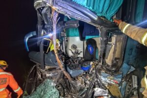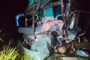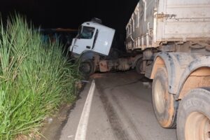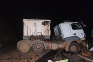 A colisão, aconteceu por volta das 22h30min, na saída do Distrito de Vermelho, sentido Pirapanema, e envolveu um ônibus de viagem e uma carreta.