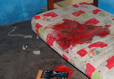 Em um barraco simples, a cama estava ensanguentada e sobre a mesa da varanda, resquícios de maconha para uma madrugada quente, que acabou em homicídio. Segundoinformações, a vítima Luciana Rodrigues Souza, 25, estava na casa acompanhada do amásio, Sérgio Chaves de Souza, 31 anos e outros três amigos.