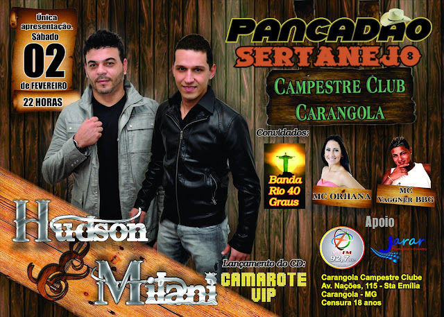 Acontece no próximo sábado, dia 02, o show de lançamento do CD da dupla Hudson & Milani.
